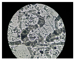 ven agrupadas, con coloración azul por la tinción empleada, sin identifiación
